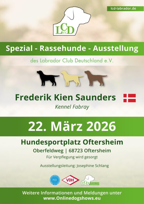 Doppel CACIB Offenburg Richter Labrador Retriever (Stand 29.12.2025): Tag 1 (Sa, 14.03.): Peter King Tag 2 (So, 15.03.): Ulrike Dunkhase Neben den Anwartschaften werden folgende Titel vergeben: Ortenau Sieger Ortenau …